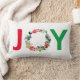 Red and Green Joy Holiday Wreath Pattern Lumbar Pillow