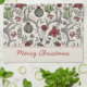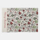 This white Merry Christmas kitchen towel features a hand-drawn country Western pattern with reindeer skulls and antlers, red roses, cactus plants and poinsettias in black ink against an elegant cream background, capturing the spirit of Christmas.