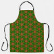 Great color and even though I ordered the kid size, it covers well enough to use during the holidays. I am not a big woman and prefer a shorter apron. I stand 5"6" and the length of the garment goes to mid-thigh. The tie straps fit well at my waist and even though there is no neck strap adjustment, the opening is plenty big enough. I am happy with the size and fit. I am sharing my apron with my 10 year old grandson, too! The color is vibrant and looks good, as shown on the website. The stitching looks strong and reinforced. Photographed is front side and back side of the apron, reinforced straps and coloring. My phone camera may not be the best at showing the details.