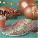 Paper plates with colorful design in red, green by artist Didi McKay. Didi_Love abstract artwork is inspired by the natural world, and brings fun and festive energy to every event and party.Be unique!