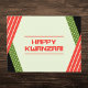 Celebrate Kwanzaa with a modern twist using this stylish greeting card. Featuring bold red stripes and green polka dots against a light background, this card combines traditional Kwanzaa colors with a fresh, geometric design. The message "Happy Kwanzaa!" is prominently displayed in red, making it a perfect choice for sending warm wishes to loved ones during the holiday. Spread the joy of Kwanzaa with a card that reflects the festive spirit of unity and family.