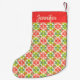 Perfect! Exactly what I ordered! I uploaded a picture of my blue chow, and the screen print was incredible. the back side of the stocking was the red and black checkered print. my puppy's name was also printed on the cuff of the stocking. PERFECT! Highly recommend this product! My puppy's name was screen printed onto the cuff of the stocking, the font was perfect!