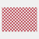 A set of bright red and green check pattern retro Christmas wrapping sheets, with one red, one green, and one red and green sheet.