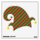 Bright red and green stripey elf hat with yellow bells on festive wall decal.