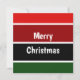 A red and green horizontal striped pattern and the text: Merry Christmas. You can click personalize and edit the text. Write 2 words in one line and they will appear on two rows.