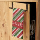 Red and Green Stripes Personalized Christmas Kitchen Towel