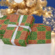 Red and Green Tile Art on Gold Pattern Wrapping Paper