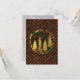 Custom Christmas card with red and green velvet stripes with floral pattern and gold trees.