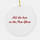 Lightweight, smooth, pure white ornament with nice sheen. Perfect size to be seen from across the room ... and to attract closer inspection! Price was great for ordering enough for the whole family! Clear, bold black design just as requested. Matches the order exactly. Just so nice!