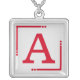 Red and grey personalized initial silver plated necklace