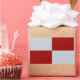 Two red rectangles and two grey rectangles form a checkered pattern in this clean graphic design.