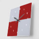 Two red rectangles and two grey rectangles form a checkered pattern in this clean graphic design.