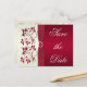 ****PLEASE NOTE that the ribbon and jewels are printed images, and are not real. This red and ivory floral save the date post card matches the items shown below. If you require any changes, or additional matching items, email niteowlstudio@gmail.com with your request.