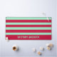 Red and Mint Green Stripes Pattern Personalized Desk Mat