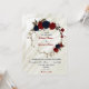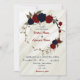 red and navy blue floral wreath wedding invitation