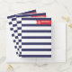 Perfect for back-to-school or your home office - you will love the unique design on our Red and Navy Nautical Stripe folder. This design features a navy blue and white striped background, with a red flag banner and nautical anchor graphic. The red banner can be personalized with any text you would like such as your name, school, subject, or monogram. This makes a great personalized gift for friends or family as well as back to school students, college students, business owners, employees, or clients.