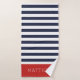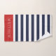 This custom made-to-order bath towel set has a preppy horizontal stripe pattern in navy blue, red and white. Personalize it with your monogram name and initial or other custom text. Use the design tools to choose any background colors, edit the text fonts and colors or upload your own photos to create a unique custom set of bath towels to match any bathroom decor. The set includes a coordinating bath towel, hand towel and wash cloth or select individual towel sizes as needed.