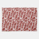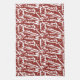 Red and orange abstract shapes blend and overlap a kitchen towel