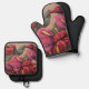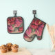 This oven mitt set is printed with a hand-drawn red and pink anthurium design.