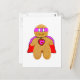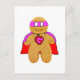red and pink gingerbread man super hero postcard