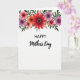 Designed with a lush floral garland across the top, this card features an abundant mix of blossoms and leaves that feels like a gentle hug for Mom ❤️. Rich red, soft pink, sunny orange, and light lavender petals open outward, each bloom anchored by a darker, textured center that adds depth. Fresh green leaves and small buds weave between the flowers, giving the arrangement a tender, growing-together look that suits close family bonds. Below the flowers, a wide field of white space keeps the layout airy and lets the message stand out. The word “HAPPY” appears in large uppercase letters near the center in a dark tone, with “Mother’s Day” placed just beneath it in a flowing, cursive-style line. Soft, even lighting and careful shading on the petals create a lightly three-dimensional effect, like the bouquet is leaning toward the reader with affection 🌼. The upper edge is densely filled with flowers while the lower half remains open, with the text centered under the garland on a white background.