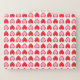 Abstract digital art of rows of pink hearts that are outlined in red with alternating solid red hearts.