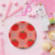 Tomato drawing. Custom paper plates. Pink and red plaid pattern background.