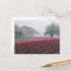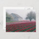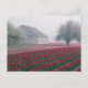 Red and pink tulips greet the day on a misty postcard
