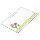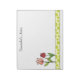 This notepad has delicate pink and red tulips and a green spotted border with text above for you to personalize.