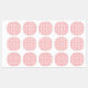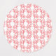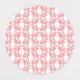 Red and pink wrapping paper featuring a repeating labels