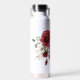 Red and Plum Roses Watercolor Floral with Monogram Water Bottle