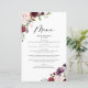 Add a fall floral accent to your event's tablescape with this customizable menu card. It features watercolor burgundy, red and blush pink flowers with foliage accents. This floral menu card is perfect for autumn weddings, bridal showers, baby showers and birthdays. Personalize by adding names, date and menu details.