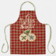 Great color and even though I ordered the kid size, it covers well enough to use during the holidays. I am not a big woman and prefer a shorter apron. I stand 5"6" and the length of the garment goes to mid-thigh. The tie straps fit well at my waist and even though there is no neck strap adjustment, the opening is plenty big enough. I am happy with the size and fit. I am sharing my apron with my 10 year old grandson, too! The color is vibrant and looks good, as shown on the website. The stitching looks strong and reinforced. Photographed is front side and back side of the apron, reinforced straps and coloring. My phone camera may not be the best at showing the details.
