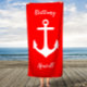 Red and White Anchor Personalized Script Name Bath Towel. Simply edit text to personalize!