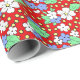 This floral wrapping paper features a red background with hand-drawn white and blue flowers and green leaves, and would be perfect for a woman's birthday or a Baby In Bloom girl's baby shower. It's a colorful addition to your gift-giving, and will brighten up your day.