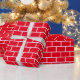 This fun wrapping paper features a red and white rectangle pattern inspired by bricks on a chimney.