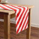 Simple and bold Candy Stripe 100% natural cotton Holiday table runner. This will fit in with most of your traditional style Holiday décor, and with contemporary decorations too. Table runner is 14" x72" and features double-sewn edges.
