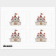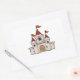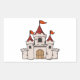 Red and White Cartoon Medieval Castle with Flags Rectangular Sticker