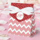 Red And White Chevron Wedding Favor Monogram Gift Boxes. Custom wedding favor gift boxes for your wedding reception guests.