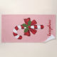 Red And White Christmas Candy Cane And Custom Name Beach Towel