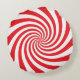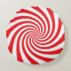 You can change the festive red peppermint background on this round pillow to another color. Add a name or monogram to create your own personalized design. You can even add curvature in the font settings.