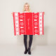 Christmas design with white snowflakes, snowmen, stars and stripes on a red background and a text.