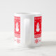 Christmas design with white snowflakes, snowmen, stars and stripes on a red background.