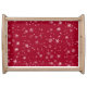 Red and White Christmas Snowflake Pattern Serving Tray. Beautiful white snowflakes in different shapes and sizes on a red background.