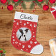 Perfect! Exactly what I ordered! I uploaded a picture of my blue chow, and the screen print was incredible. the back side of the stocking was the red and black checkered print. my puppy's name was also printed on the cuff of the stocking. PERFECT! Highly recommend this product! My puppy's name was screen printed onto the cuff of the stocking, the font was perfect!