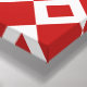 A bold graphic pattern of interlocking red and white diamond shapes. The white diamonds each contain a small red diamond making red the dominant color of the geometric design.