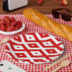 Red and white diamond pattern paper plates