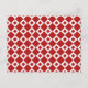 A bold graphic pattern of interlocking red and white diamond shapes. The white diamonds each contain a small red diamond making red the dominant color of the geometric design.