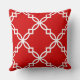 Red and White Fancy Quatrefoil Pattern Throw Pillow