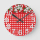 Red and white gingham cottage country kitchen wall clock at www.zazzle.co.uk/blubush
